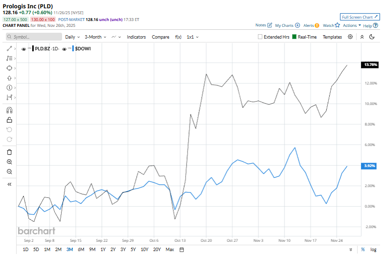 PLD stock touched its 52-week high of $129.28 in the last trading session and has gained 15.1% over the past three months, notably outperforming the Dow Jones Industrial Average’s ($DOWI4.4% rise over the same time frame.