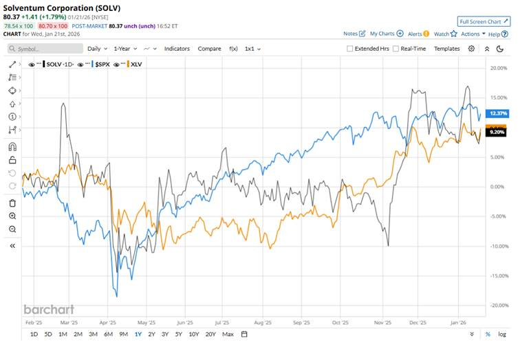 SOLV has lagged behind the S&P 500 Index’s ($SPX) 13.7% gains over the past 52 weeks, and the Health Care Select Sector SPDR Fund’s (XLV) 11.1% returns, with shares up 8.6% during this period.