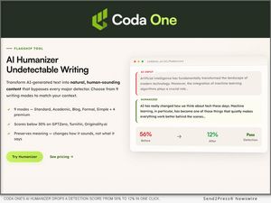 LONDON, UK, March 25, 2026 (SEND2PRESS NEWSWIRE) -- Coda One has built two tools that probably shouldn't exist in the same company. One rewrites AI-generated text so it reads like a person wrote it. The other scans any text and tells you exactly how much of it looks machine-made. Both are free. Neither requires an account.